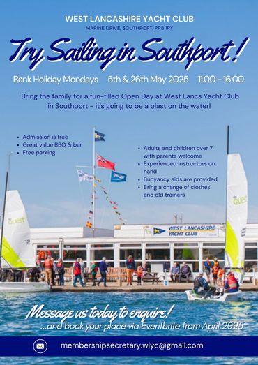 Come join us for a fun-filled Sailing Open Day at West Lancs Yacht Club in Southport - it's going to be a blast on the water!